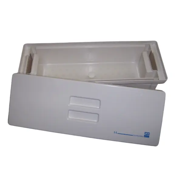 Un bac de désinfection avec un panier de contenance 5 L et un couvercle. Il entre dans la composition du kit hygiène, selon la réglementation en vigueur cf. Code des Collectivités Territoriales sur les Chambres Mortuaires et Funéraires.